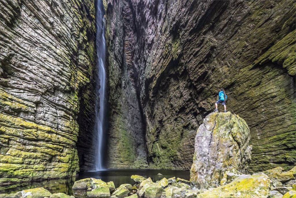 Com cerca de 85 metros de altura, um cânion emoldurado por rochas folhadas e uma trilha que acompanha as margens do Rio Espalhado, a Cachoeira do Buracão figura entre as mais impressionantes da Chapada Diamantina, na Bahia. Principal atrativo do Parque Natural Municipal do Espalhado (PNME), a cachoeira está localizada no município de Ibicoara (BA), uma área natural protegida que proporciona aos visitantes uma experiência singular em meio a dezenas de quedas d’água abertas à visitação.